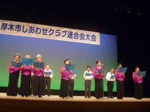 10月29日、厚木市文化会館大ホールで、厚木しあわせクラブ連合会大会を第一部式典、第二部第45回演芸大会として開催しました。