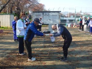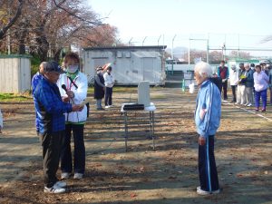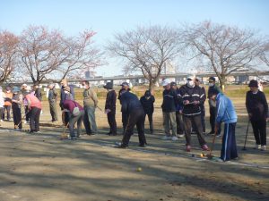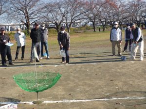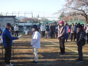 温かい日差しの中で、100名の参加者の皆さまがゲートボール・ターゲットバードゴルフ・グラウンドゴルフ3種類の球技を楽しみました。