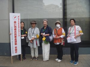 10月3日赤い羽根共同募金運動に、女性部5人が協力。